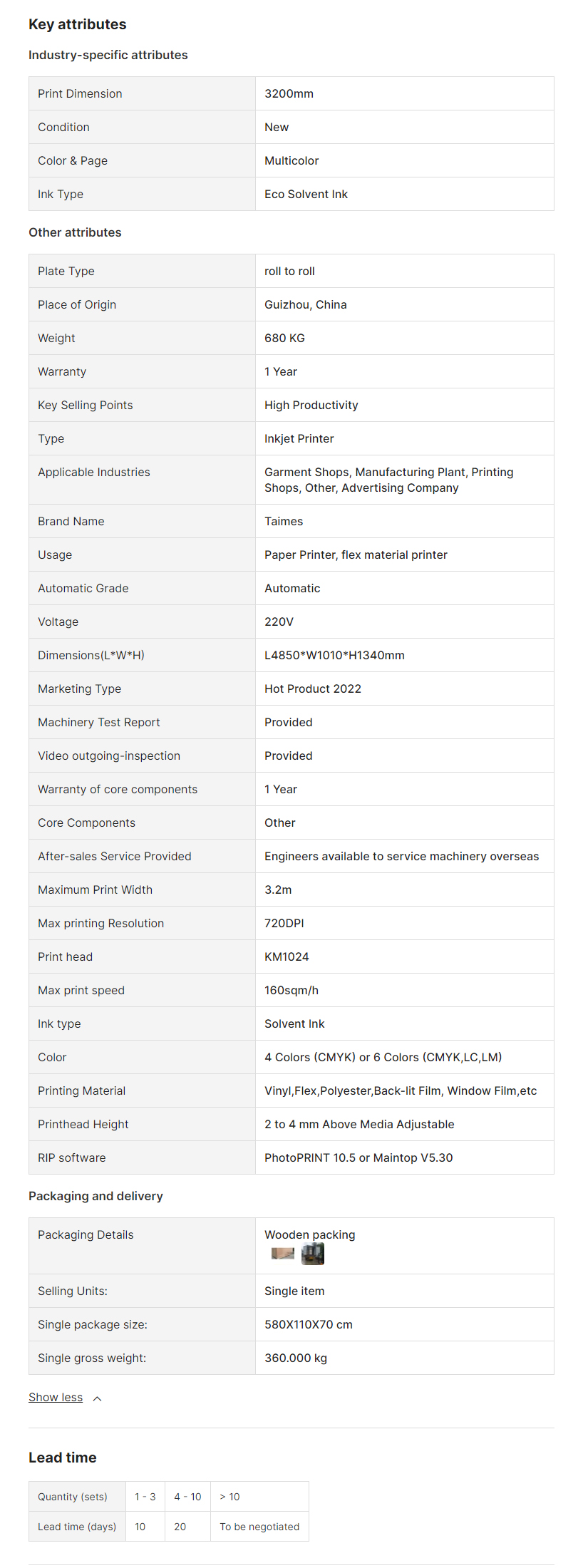 cheap price Taimes T8 large format solvent printer,3.2m taimes solvent printer price
